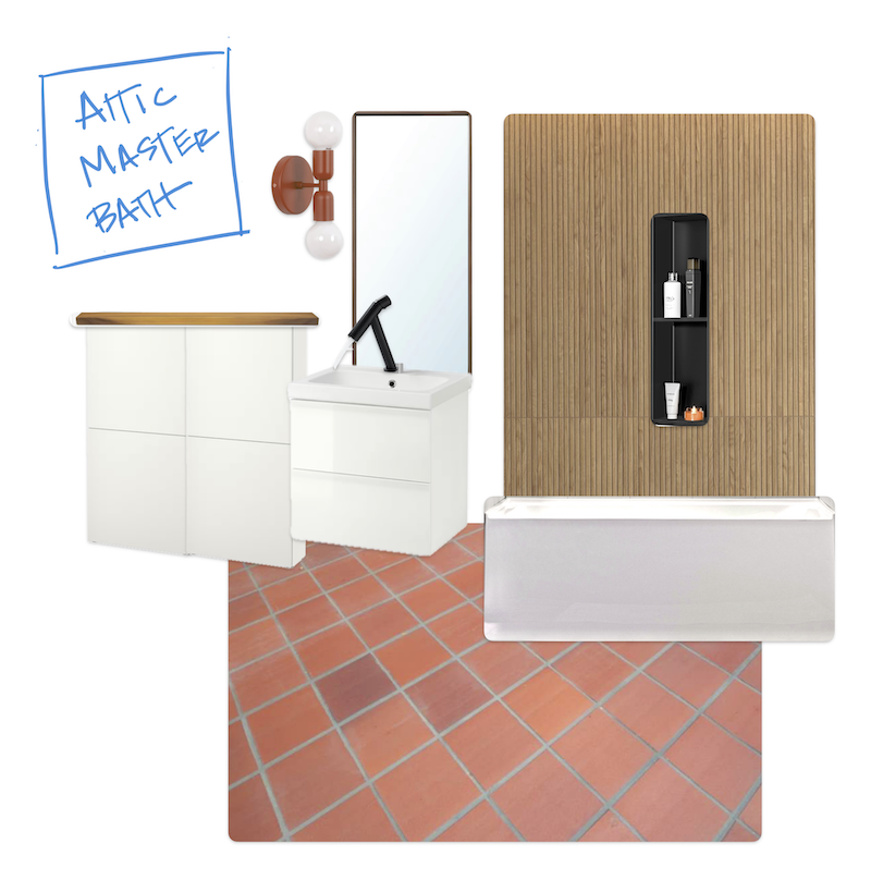 I have champagne tastes and a water budget, so I am constantly finding pieces on sale or on Craigslist or Facebook Marketplace, and putting the pieces together into a cohesive design. I find it a fun challenge and when I come across a big ticket item like the soaking tub for half price on Craigslist, I find a place to store it for 6+ months, til it’s time to use it! I also hack IKEA pieces like it’s my full-time job. There is also a DIY lighted mirror idea that I’m still noodling around with, that I’m hoping to figure it out before time runs out!